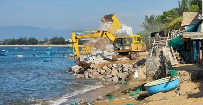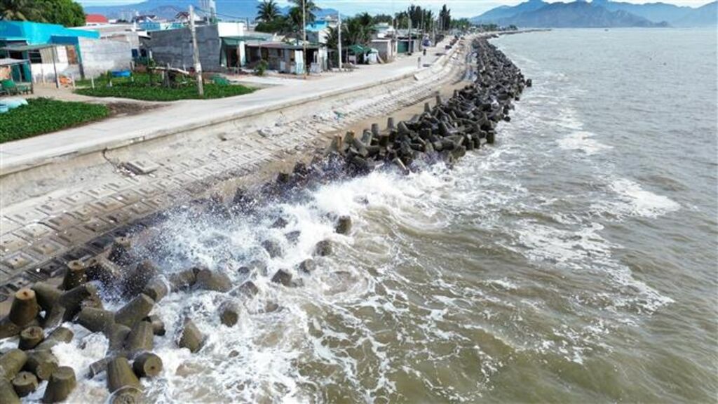 | La digue côtière du quartier de Dông Hai (ville de Phan Rang - Thap Chàm, province de Ninh Thuân au Centre) pour prévenir l'érosion par les vagues. |