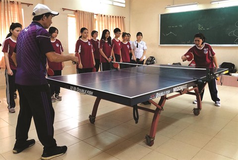 Une raquette de ping-pong à la main, Trinh Lâp Y Thu, une élève de la classe 11B2, vient de terminer sa séance d’entraînement dans l’enceinte du lycée Ngô Gia Tu de Hô Chi Minh-Ville. Des gouttes de sueur perlent sur son front. Y Thu s’est inscrite au cours de tennis de table il y a deux jours à peine. Elle s’est décidée pour cette discipline après avoir testé plusieurs autres sports après les cours.