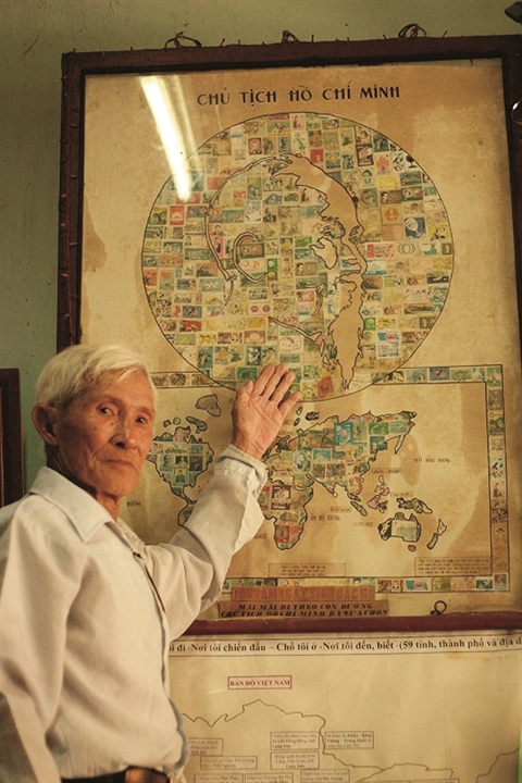 C’est en 1990 qu’il commence son ouvrage. Sur une planche de bois, il dessine la figure du Président Hô Chi Minh, qu’il remplit de timbres soigneusement choisis. Il y ajoute une carte avec les 28 pays que l'Oncle Hô a traversés au cours de ses 30 ans à la recherche de la meilleure voie pour libérer le pays.