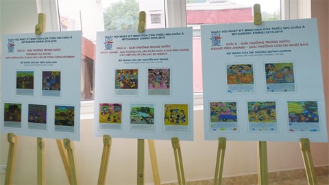 | Les peintures des jeunes vietnamiens primés lors du Grand Prix du concours de peinture Mitsubishi Asian Children's Enikki Festa (2015-2016). |