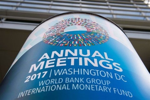| Assemblée générale de la Banque mondiale, le 9 octobre 2017 à Washington, aux États-Unis. |