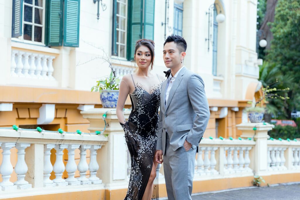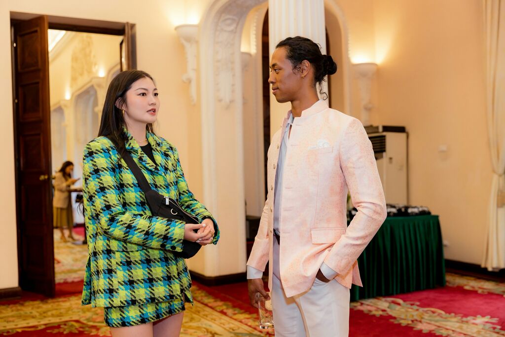 | L'équipe Vert : Thao Nhi Lê (1re dauphine de Miss Universe Vietnam 2022) et Dino Vu (bloggeur gastronomique), deux des trois représentants du Vietnam. |
