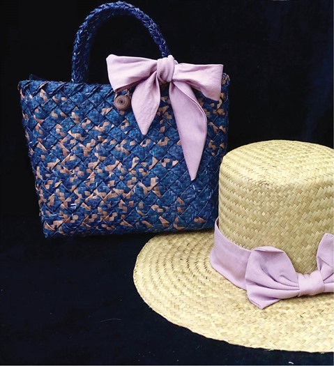 Dans le village de Phò Trach, les artisans créent des chapeaux coniques et des sacs de mode à partir de ces matériaux et les décorent de motifs colorés.