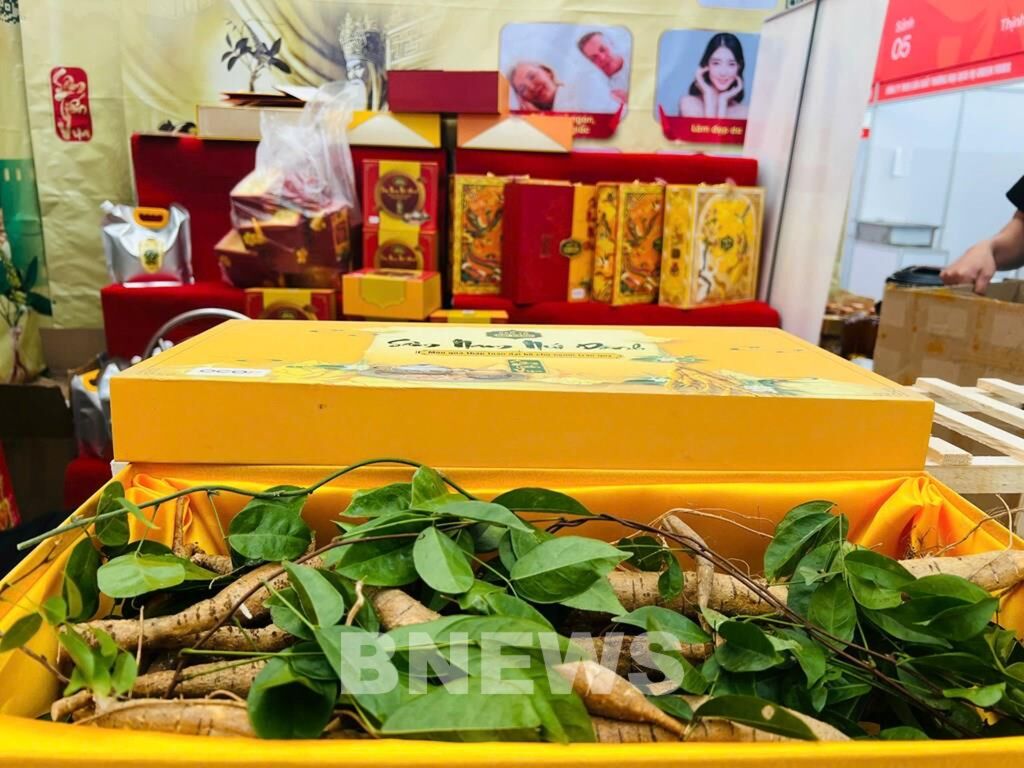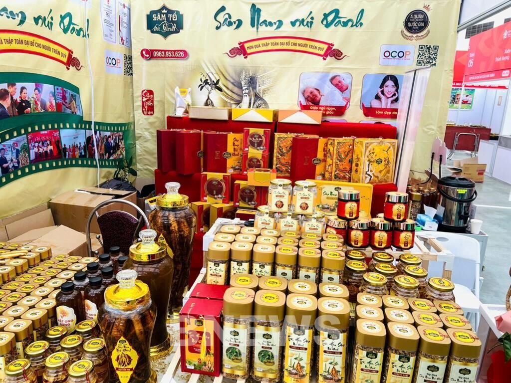 | Les produits phares de "Sâm Tổ Núi Dành" présentés à la Foire du Printemps 2026. |