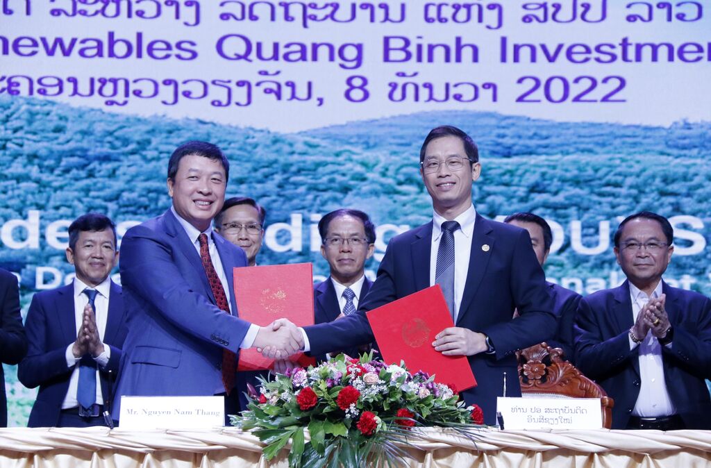 | Cérémonie de signature du protocole d'accord entre la Compagnie par actions d’investissement AMI Renewables Quang Binh et le gouvernement laotien. |