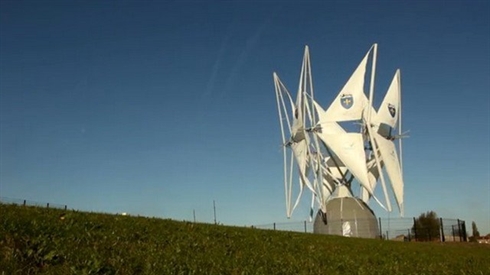 | Une éolienne à voile a été inauguré ce week-end à Grande-Synthe, dans le Nord de la France. |