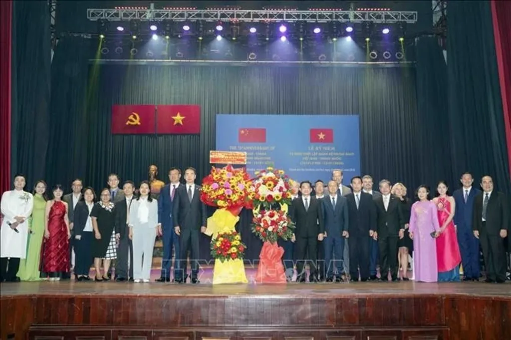 | Cérémonie célébrant le 75ᵉ anniversaire de l'établissement des relations diplomatiques entre le Vietnam et la Chine (18 janvier), à Hô Chi Minh-Ville. |
