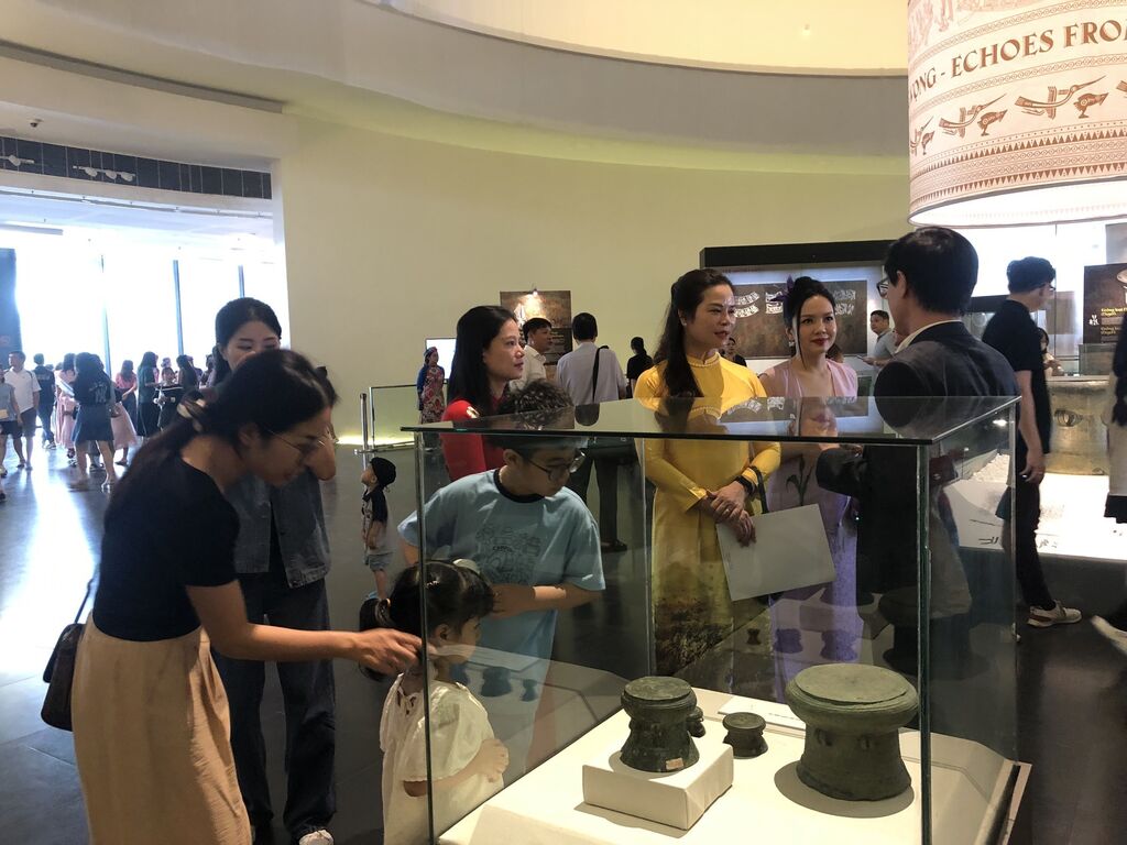 Lors de l'exposition, le tambour en bronze de Cô Loa - un trésor national - a été choisi comme point culminant pour raconter au public des histoires historiques liées à l'artefact.