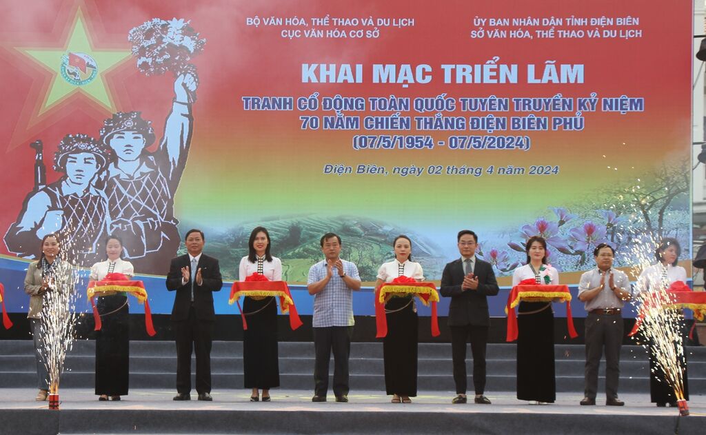 | Ouverture de l' exposition d’affiches de propagande sur la victoire de Diên Biên Phu à Dien Bien. |