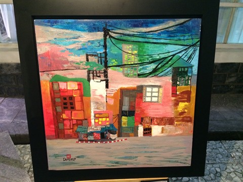 | Une peinture représentant une scène de rue au Vietnam de Nguyên Dam Thuy. |