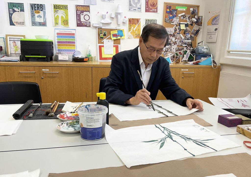 Mes œuvres expriment principalement la vie à travers le regard de la méditation, mais sans laisser l’esprit du spectateur s’arrêter aux impressions sensorielles ou émotionnelles. Elles invitent plutôt la conscience à traverser ces sentiments pour revenir à la pureté intérieure. Pour lui, les moments de "solitude silencieuse" entre le papier, le pinceau et l’encre sont indispensables pour que l’esprit de l’artiste puisse s’unir à l’intention de l’œuvre.