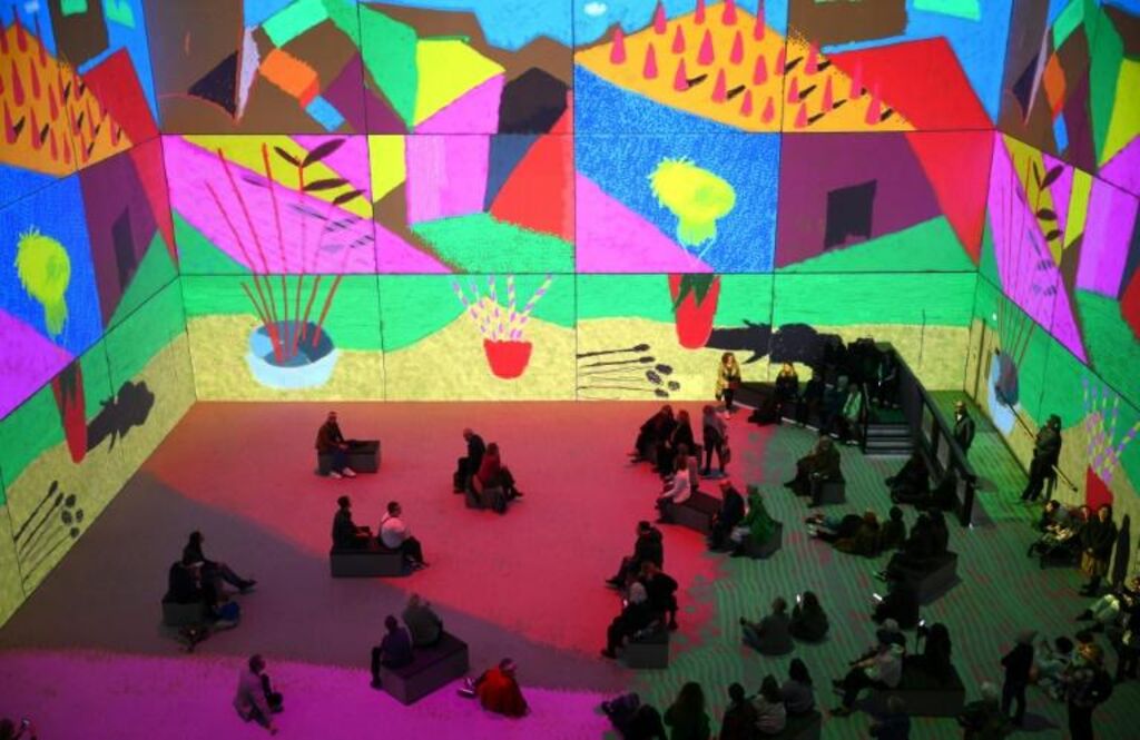 | Vue de l'exposition immersive d'oeuvres du peintre britannique David Hockney à Londres le 22 février. |