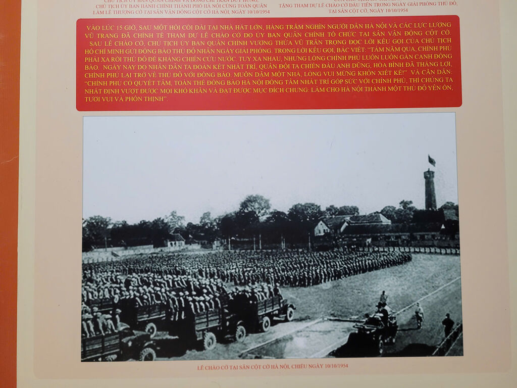 De nombreux documents et images liés à la prise de pouvoir ont été publiés à cette occasion, notamment un document sur l'accueil des troupes vietnamiennes et des responsables du gouvernement de résistance le 10 octobre 1954 ; des photos de soldats français se retirant de divers endroits de la capitale ; les troupes vietnamiennes prenant le contrôle du mât du drapeau ; et la cérémonie de lever du drapeau l'après-midi du 10 octobre.