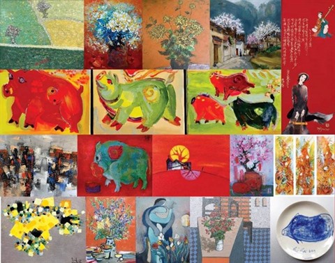 Selon le peintre Lê Thiêt Cuong, les peintres se sont rendus au village de la céramique de Bat Tràng pour trouver des idées et du matériel pour leurs œuvres. L'exposition présente plus de 70 peintures sur des matériaux différents tels que l'huile, la laque et l'acrylique.