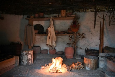 | Réplique de l'intérieur d'une maison sur le site préhistorique de Stonehenge, le 19 janvier près d'Amesbury, en Angleterre |