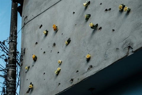 Certaines d'entre elles ont leur façade criblées d'impacts de balles, témoins de la violence du quotidien. De petites fleurs jeunes ont été fixées dans les trous qui ont percé la devanture d'un magasin de matelas.