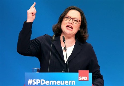 Dans son discours dimanche 22 avril, Andrea Nahles a promis de lutter pour plus de justice sociale en Allemagne. "La solidarité est ce qui manque le plus dans ce monde globalisé, néo-libéral et ultra-numérisé", a-t-elle affirmé.