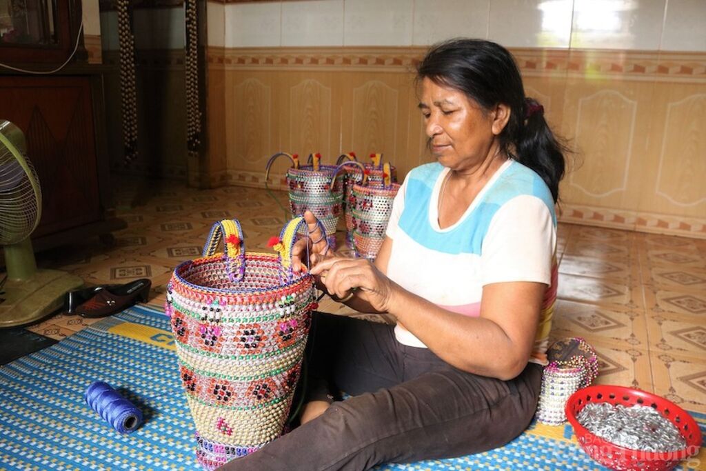 “Lors d’un festin de famille, j’avais vu des canettes de bière et de boissons gazeuses vides éparpillées sur le sol. Soudain, l’idée de les utiliser comme matériau pour fabriquer des sacs et des paniers a émergé dans mon esprit”, partage Mme Vo à propos de l’origine de son idée.