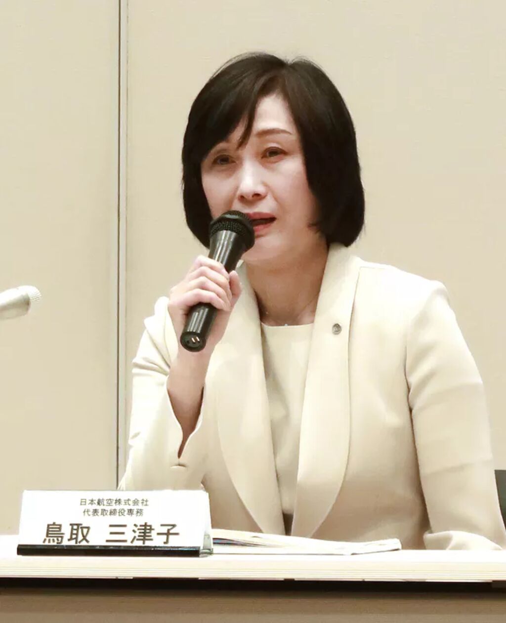 | Mitsuko Tottori, nommée présidente de Japan Airlines le 17 janvier, a commencé sa carrière chez cette compagnie aérienne en 1985. |