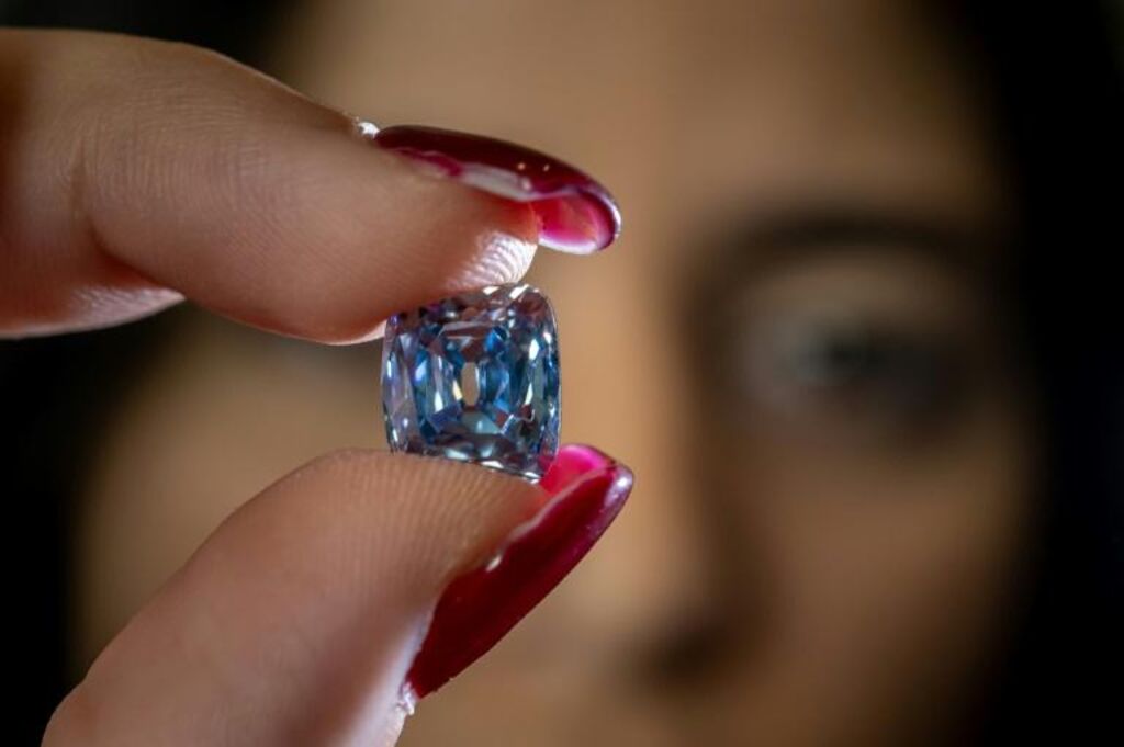 | Diamant bleu de 5,53 carats, un des huit diamants de la "Collection bleue exceptionnelle" de De Beers, mis aux enchères par Sotheby's le 9 novembre. |