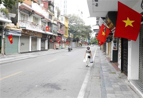 | La rue Hàng Gai, au cœur de Hanoï, presque déserte en raison des mesures de distanciation sociale, le 2 septembre. |