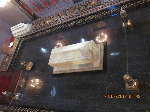Un escalier conduit à la chambre funéraire qui est ceinturée d’une galerie d’où le public peut découvrir le sarcophage dans lequel repose la dépouille du roi Mohammed V. Dans les angles se trouve aussi le tombeau en marbre blanc du prince Moulay Abdallah, un des fils de Mohammed V, et depuis le 30 juillet 1999, la dépouille du roi Hassan II est venue rejoindre celles de son frère cadet et de son père.