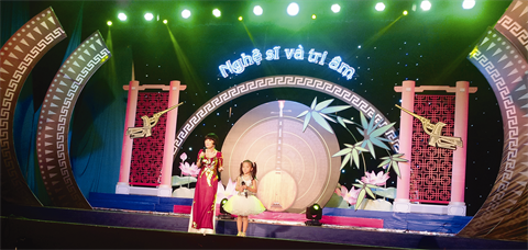 | Yên Nhi interprète au Théâtre de l’armée du Sud la chanson Dua con vào lop (Emmener mon enfant à l’école) que Thanh Kim Huê a composée pour elle. |