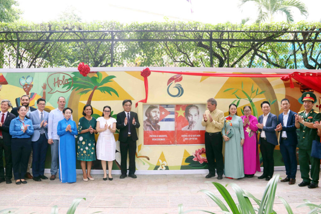 | Cérémonie d'inauguration de la fresque murale célébrant l'amitié durable entre le Vietnam et Cuba, à Hô Chi Minh-Ville. |