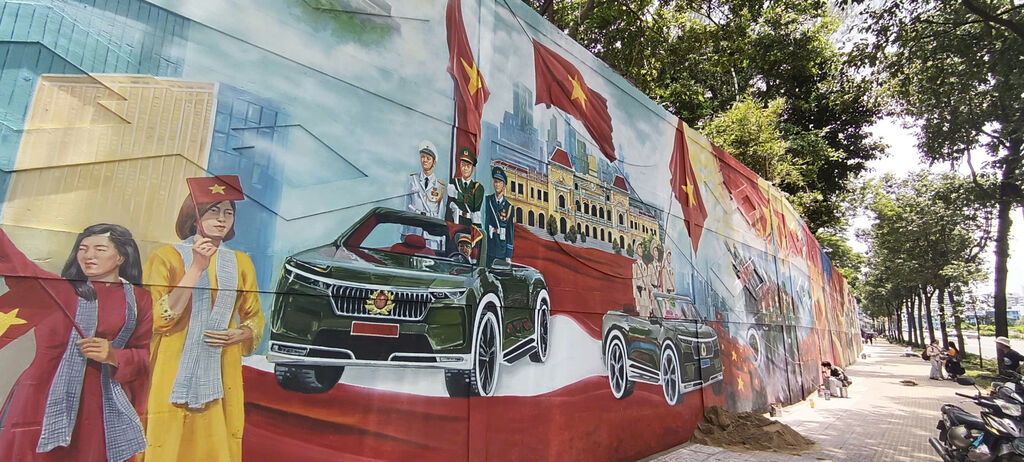 La fresque retrace avec force et vivacité le parcours allant de l’aéroport de Biên Hòa jusqu’à l’image imposante des 36 formations de la parade militaire, pour se conclure par un feu d’artifice éclatant sur le quai de Bạch Dang. Chaque coup de pinceau transmet un message de patriotisme, ravivant fierté et reconnaissance envers le glorieux passé de la nation.