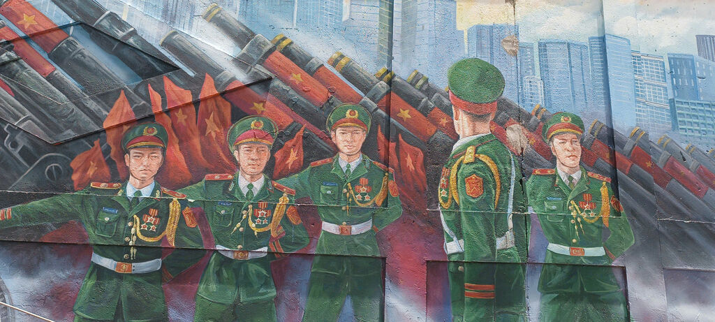 Le long de ce mur de 300 mètres, chaque formation de parade est représentée avec une grande précision : uniformes impeccables, gestes synchronisés, drapeaux aux couleurs éclatantes… L’ensemble restitue l’atmosphère solennelle du jour de la réunification et rend hommage aux sacrifices des générations passées pour la paix dont bénéficie le pays aujourd’hui.