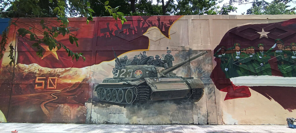 Selon Lê Tuấn Minh Viên, chef du groupe artistique, l’œuvre illustre fidèlement le déroulement de l’événement "A50" : de l’aéroport de Biên Hòa, à l’atmosphère solennelle des 36 formations de parade, jusqu’au feu d’artifice scintillant sur les rives de la rivière Sài Gòn. «Nous voulions immortaliser non seulement l’histoire, mais aussi la joie de la paix ressentie par les anciens combattants et la population. Cette fresque exprime le lien entre passé, présent et avenir», explique-t-il.