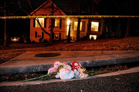 | Des peluches ont été déposées devant la maison où s'est déroulé le drame. |