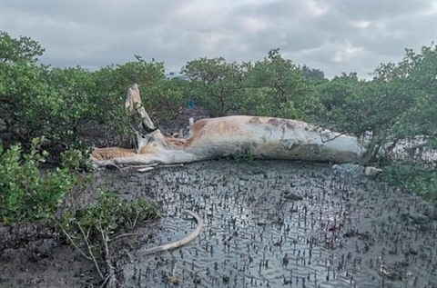 La carcasse de la baleine sera traitée et enterrée par les autorités locales quand la marée se retira.