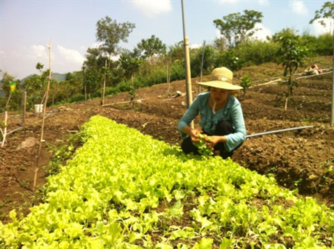 | Soin des légumes bio de Dai Ngàn de la ferme Hoa Viên dans la commune de Yên Binh, district de Thach Thât, à Hanoï. |