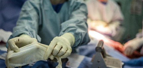 | Des chirurgiens pratiquent une greffe de la peau dans un hôpital de Lyon, en avril 2012. |