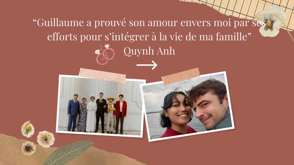 "Guillaume a prouvé son amour envers moi par ses efforts pour s’intégrer à la vie de ma famille", indique Quynh Anh.