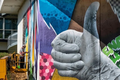 Le choix graphique de la fresque a été soumis aux agents de l'établissement hospitalier qui se sont prononcés parmi quatre propositions. La moitié des 1.300 participants ont ainsi choisi la proposition graphique représentant des mains sur un fond pop, selon l'hôpital.