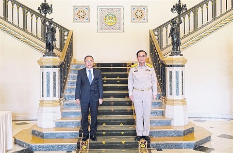 | L'ambassadeur Phan Chi Thành (gauche) et le Premier ministre thailandais Prayut Chan-o-cha en mars 2021. |