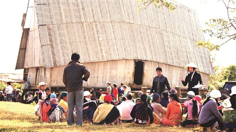 | Morita Yuko (en chapeau conique) sensibilise les Ba Na, l’une des ethnies minoritaires du Tây Nguyên, à la nourriture propre et à l’assainissement de l’environnement. |
