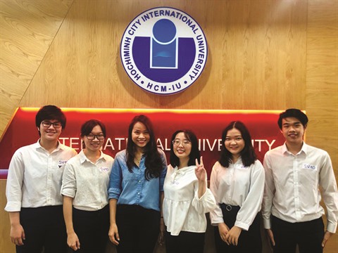 | La Dr Duong Nguyên Hông Nhung (3e à gauche) et des étudiants de l’Université internationale |