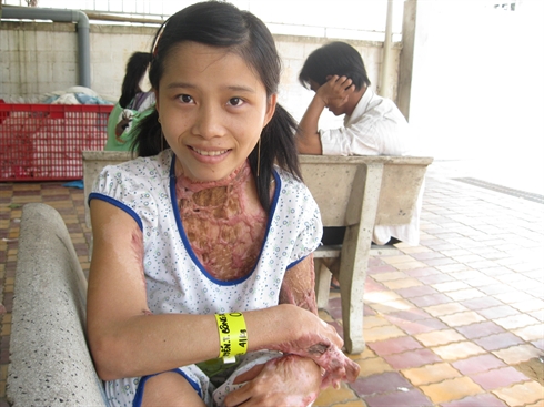 Le terrible accident, c’était deux années auparavant. En allumant une lampe à huile, ses vêtements se sont subitement enflammés : ceux-ci avaient quelques taches d’essence fatales. Paniquée, elle courut dans la forêt d’hévéa dans l’espoir de trouver un lieu humide pour éteindre les flammes. Ses voisins essayèrent de la secourir, sans grand succès. «J’ai couru comme une folle, sans réfléchir, parce qu’il faisait trop chaud. Heureusement, ensuite, j’ai eu le réflexe d’aller dans la salle de bain, là où ma famille m’a trouvée et m’a finalement porté secours». Xinh est restée dans le coma pendant trois jours. Sa poitrine, ses mains, ses bras, son cou, son menton et sa bouche étaient gravement brûlés, au troisième degré. Son amour, Dang Ngoc An, est demeuré à ses côtés, à l’hôpital, pour veiller sur elle. Elle survécut...