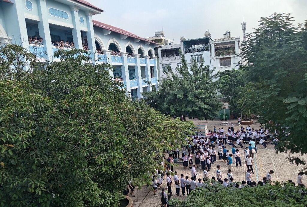 Dans la cour, les plus jeunes courent, jouant encore au loup, ils lâchent des cris de jeu qui s’échappent du brouhaha sourd et permanent de la récréation. Les autres jouent au badminton, au basket, au đá câu ou "plumfoot", qui est un jeu très populaire ici, une sorte de badminton sans raquette où l’espèce de volant doit passer de joueur en joueur sans toucher terre. Beaucoup sont adeptes de jeux de stratégie, d’autres encore marchent côte à côte en tenant un cahier dans les mains pour réviser une leçon ou préparer un examen.