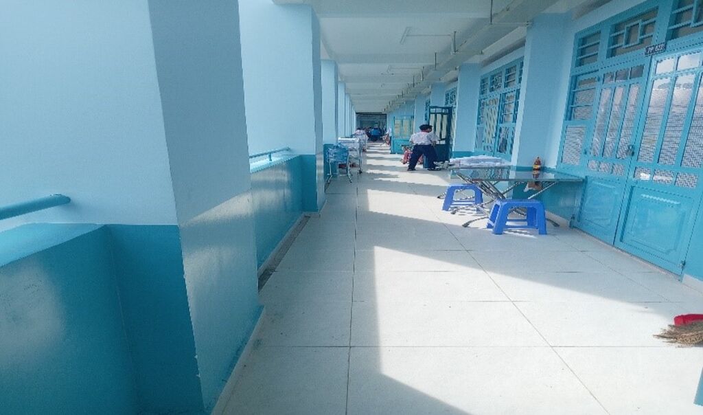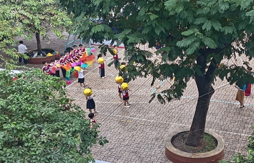 Certains se reposent à l’ombre ou profitent de la pause pour manger quelque chose. Par moments, on aperçoit les voiles colorés des áo dài des professeures, volant au vent léger sous les branches à fleurs roses qui se balancent doucement, ils apportent des couleurs éclatantes à ce tableau de cour d’école, dominé par la couleur blanche des chemises d’uniforme des enfants.