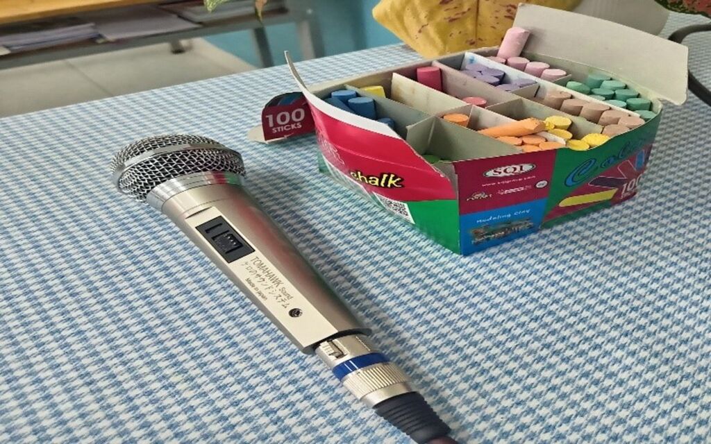 La classe "à l’ancienne" est agrémentée d’appareils modernes comme l’indispensable climatisation, le rétroprojecteur, le microphone et un grand téléviseur. Enseigner ici me procure vraiment le sentiment d’être dans un lieu où l’on prépare le futur dans un présent où le passé est bien présent !