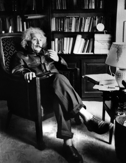 | Albert Einstein dans sa résidence de Princeton, aux États-Unis, le 2 juin 1938. |
