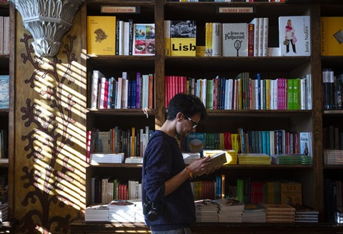 | Un lecteur à l'intérieur de la célèbre librairie Lello à Porto (Nord du Portugal), le 12 janvier. |
