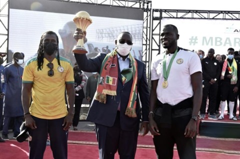 Il a touché des mains et de la bouche - sous le masque - le trophée tant convoité. Pour la circonstance, les leaders de l'opposition ont été invités et, de part et d'autre, les querelles des mois passés ont été laissées de côté. "Il y a des moments où on laisse les problèmes (politiques) pour parler de cause commune au pays", a dit Macky Sall.