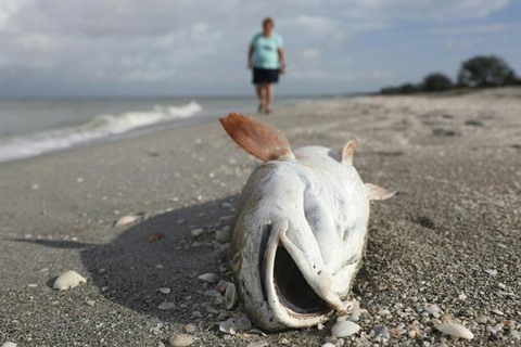 | Un poisson échoué sur la plage, à Captiva, en Floride, le 1er août. |