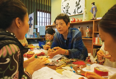 | Takeuchi Midori apprend aux enfants à fabriquer des poupées japonaises et des produits artisanaux. |