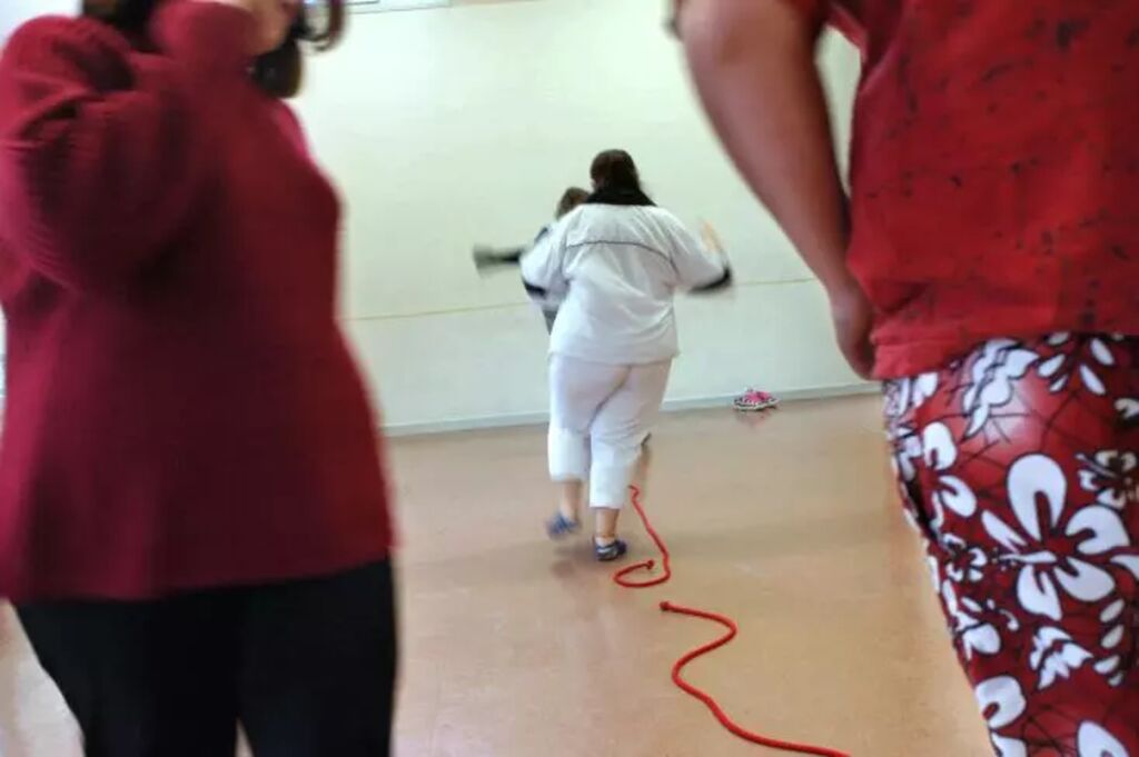 | Des pensionnaires du Centre pour enfants obèses "La Béline" suivent un cours de sport adapté à Salins-les-Bains dans le Jura. |